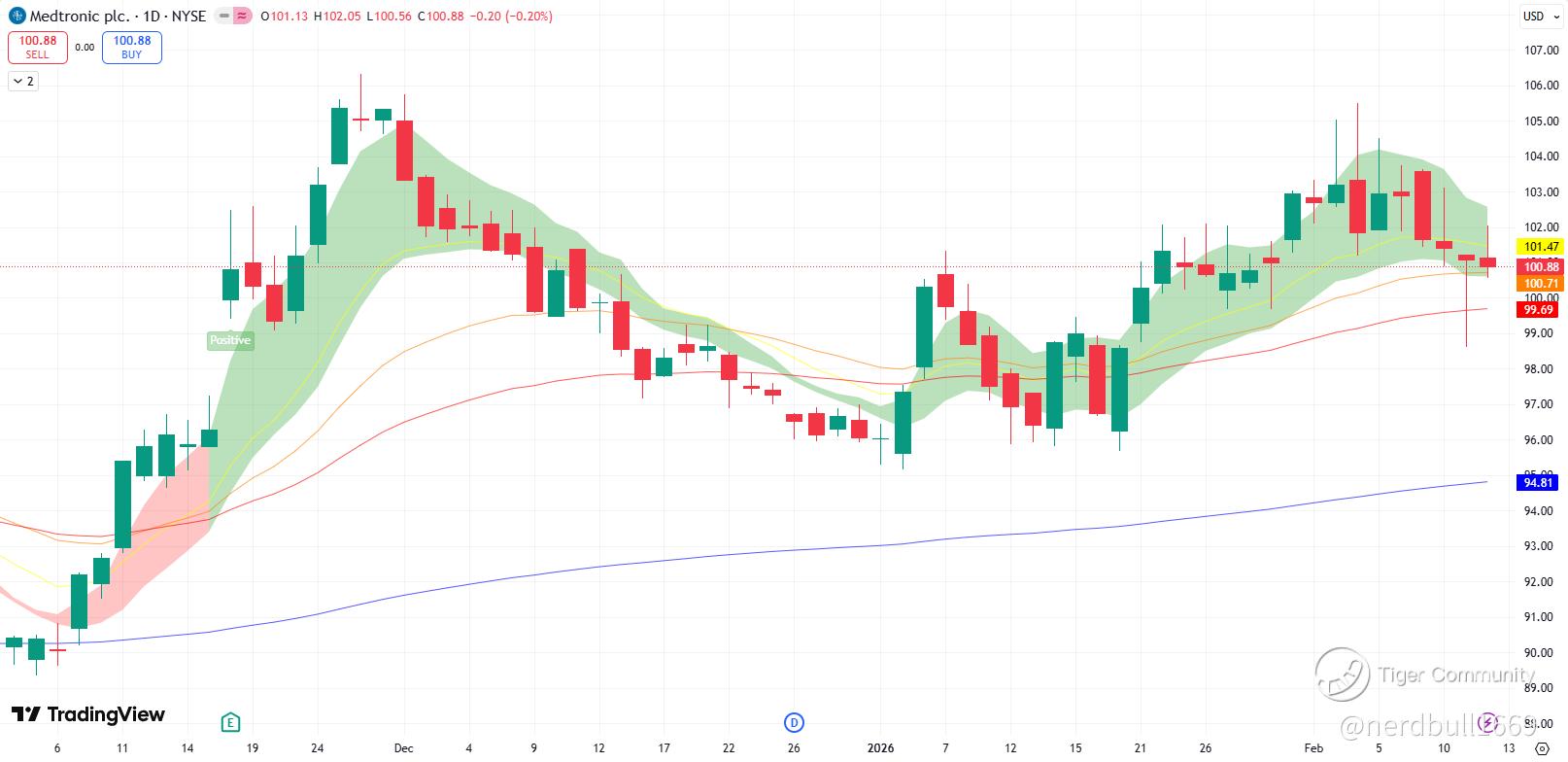 Technical Setup: MDT has been hovering around its 52-week high (~$106). It recently cleared its 200-day moving average ($96.22), which now acts as a strong support level.