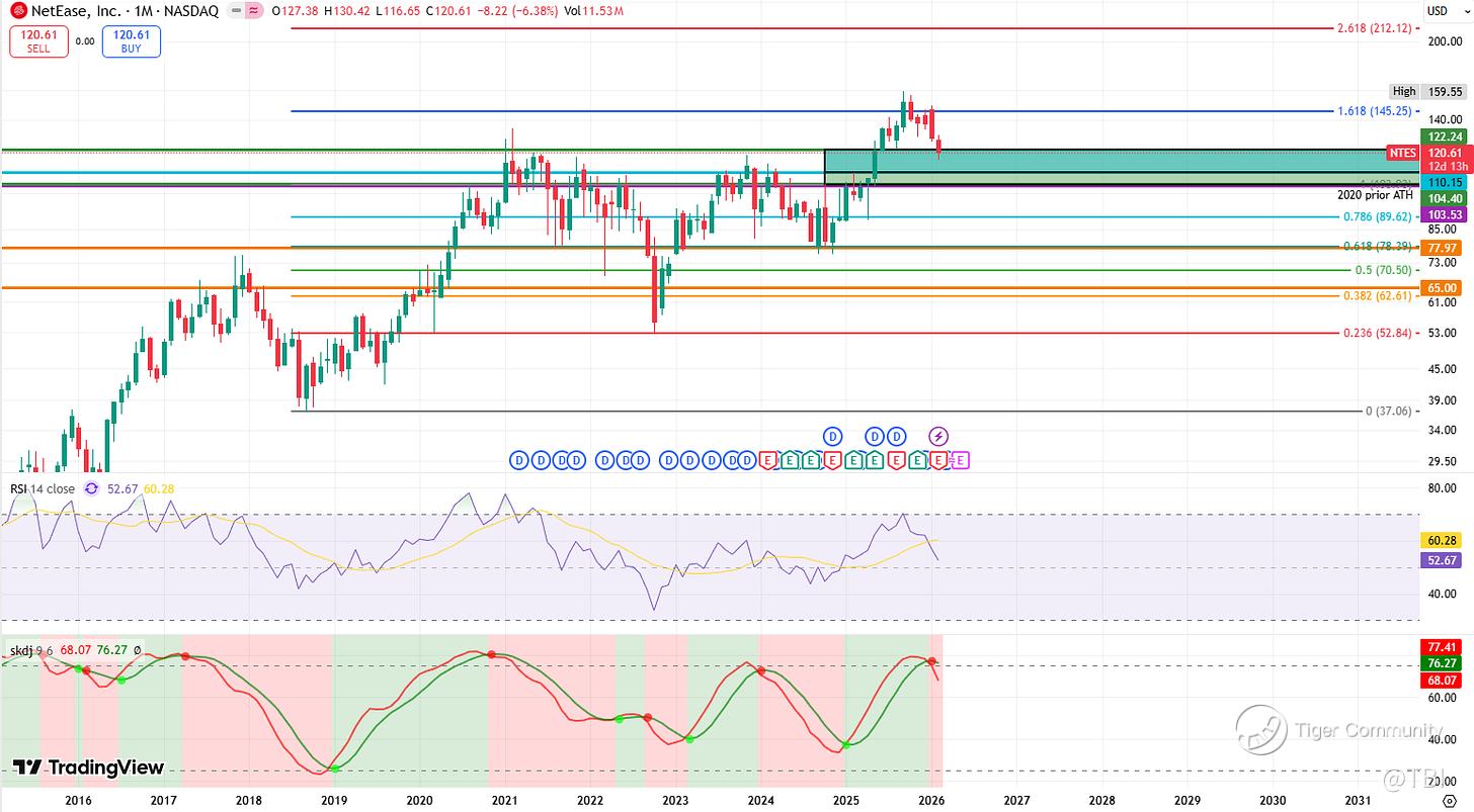 Otherwise, if NTES breaches this descending support, it could see downside continuation into the 110.15 quarterly imbalance, and as far as channel support with time.