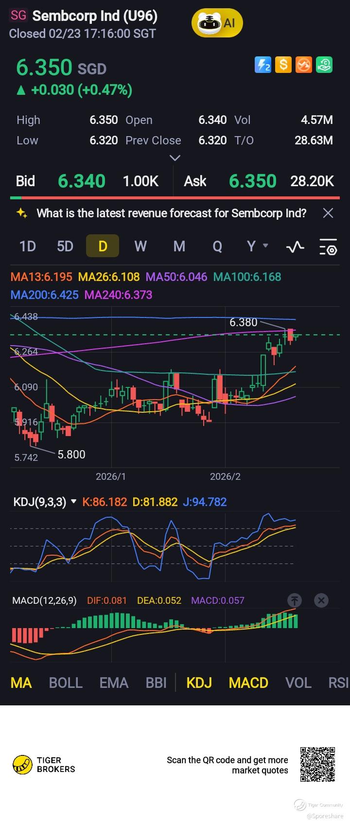 Sembcorp Ind - She is slowing rising up after touching the low of 5.80. Now trading at 6.04 looks rather interesting!
