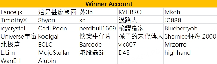 Yesterday's winners: