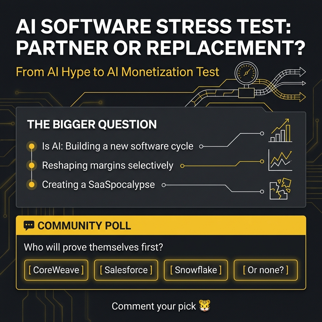 I’m closely watching $CoreWeave, Inc.(CRWV)$ , $Salesforce.com(CRM)$ and $Snowflake(SNOW)$ . CoreWeave’s leverage and funding plans test infrastructure sustainability. Salesforce’s AI ARR shows whether customers are truly paying for AI. Snowflake’s consumption and RPO trends reveal if enterprise AI demand is real or just experimentation.