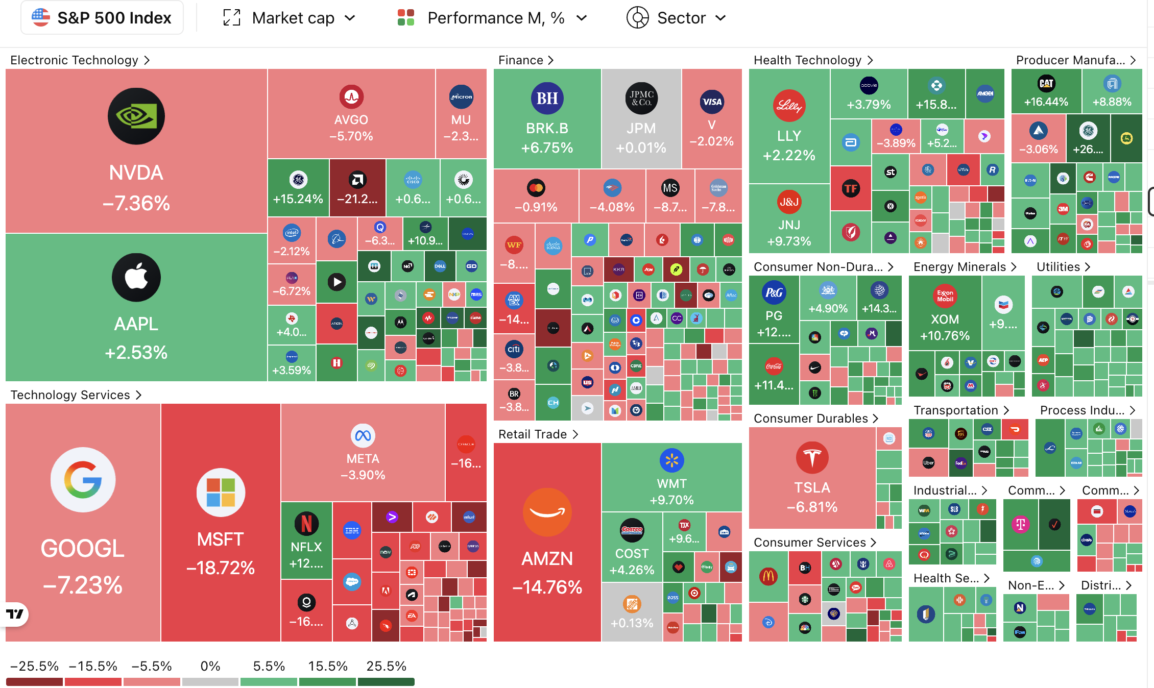 $NASDAQ(.IXIC)$ : -3.38% – The epicentrer of the sell-off; late-month "panic selling" amplified the decline.