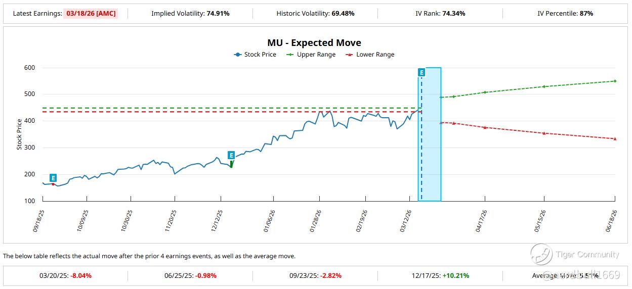 The options market is pricing in an implied move of ±10.4% ($44.18) for Micron’s earnings on March 18, 2026. This exceeds the historical average move of 8%, signaling heightened sensitivity to AI guidance.