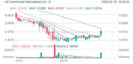 Ucommune (UK) closed at $0.59 on 2026-03-17, surging +13.44% (+$0.07). The stock is now 61.9% below its 52-week high of $1.55.