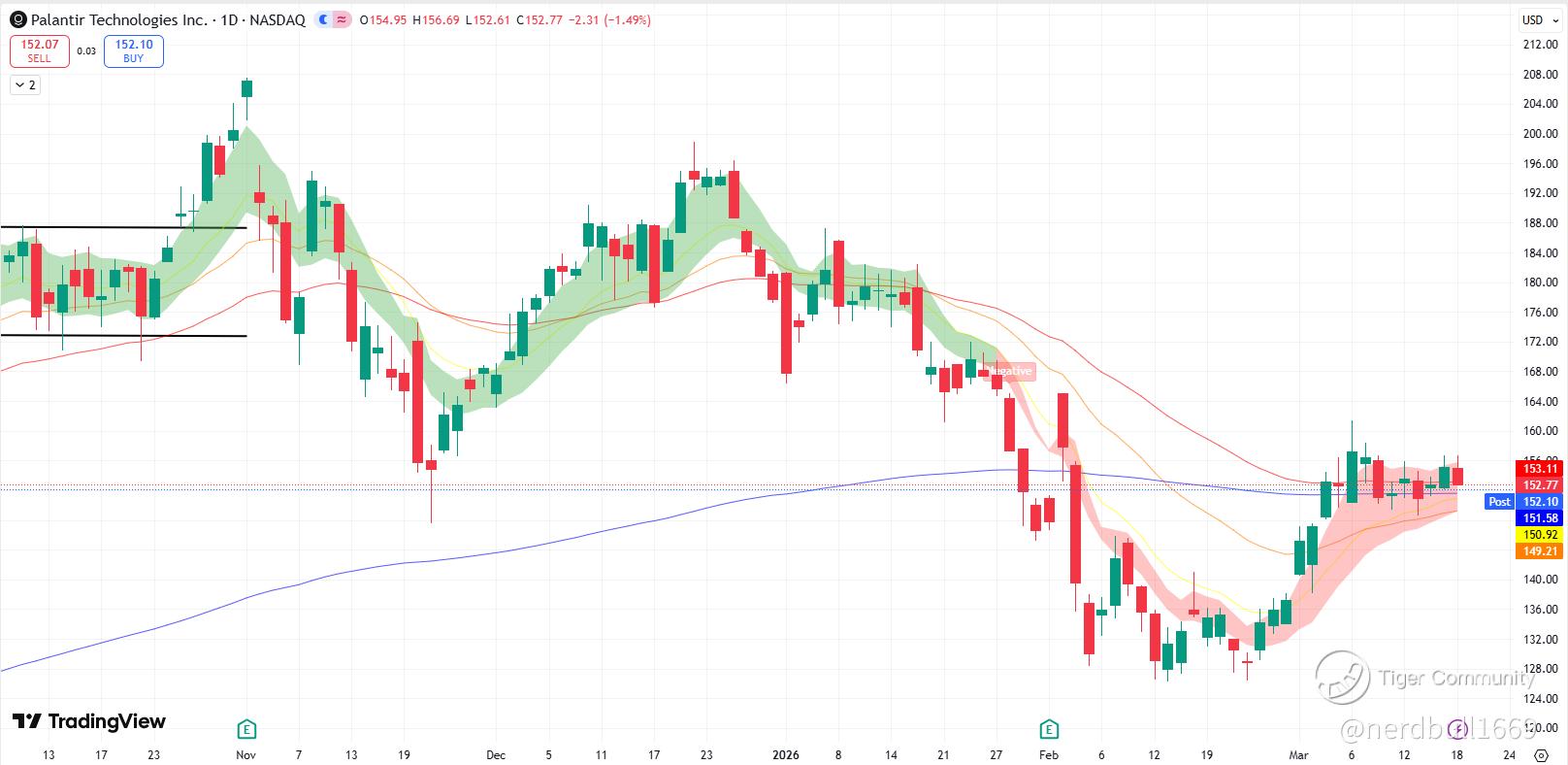 As of mid-morning on Wednesday, March 18, 2026, Palantir (PLTR) is showing signs of a tactical recovery following a period of high volatility. The stock is currently trading around $153.74, recovering from a deep correction in early 2026 that saw it bottom out near $126.