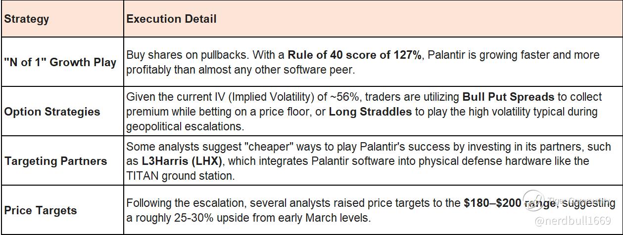 Geopolitical tensions in the Middle East have historically served as a catalyst for $Palantir Technologies Inc.(PLTR)$, as conflict often validates the efficacy of its "battle-tested" software. With the current situation involving Iran, the company is seeing a resurgence in its defense-narrative momentum.