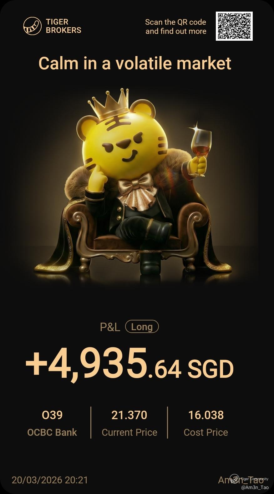 $OCBC Bank(O39.SI)$ Got this sometime back. Will continue to hold this as a strong blue chip for some coffee money.