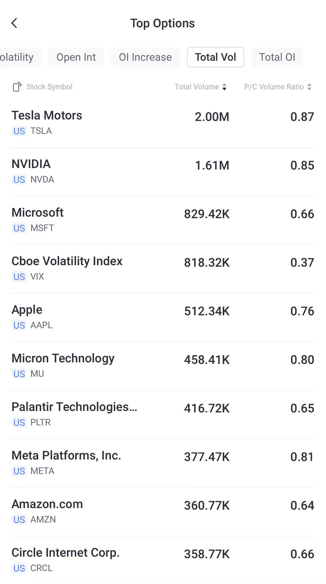 Top 10: $TSLA(TSLA)$, $NVDA(NVDA)$, $MSFT(MSFT)$, $VIX(VIX)$, $AAPL(AAPL)$, $MU(MU)$, $PLTR(PLTR)$, $META(META)$, $AMZN(AMZN)$, $CRCL(CRCL)$