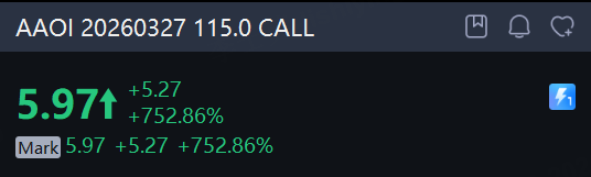 There are 72.76K Applied Optoelectronics option contracts traded on Tuesday, up 88% from the previous trading day. Call options account for 68% of overall option trades. Particularly high volume was seen for the $115 strike call option expiring March 27, with 5,378 contracts trading. AAOI 20260327 115.0 CALL