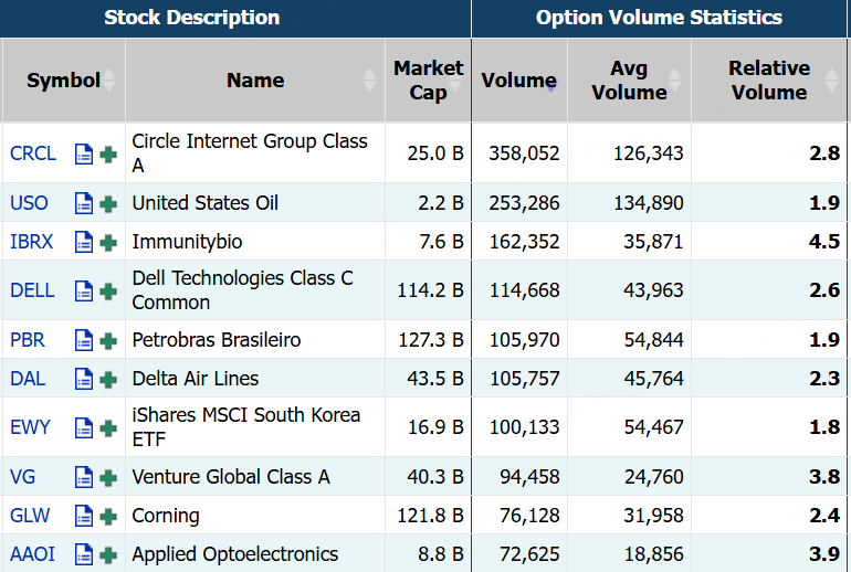 Top 10 Option Volumes