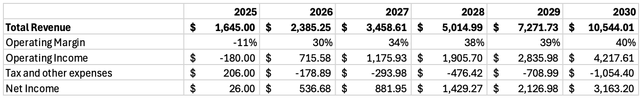 Next, as the company scales up, its operating margins grow to a heathly 40%.