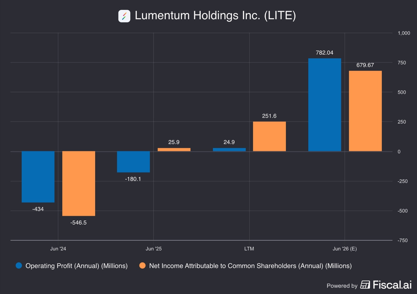 By 2026, Lumentum’s profitability has seen a massive turnaround.