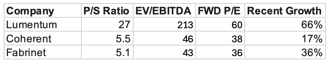 Because Lumentum is growing so fast, it is often compared to other companies in the optical networking space, such as Coherent ($COHR) and Fabrinet ($FN).