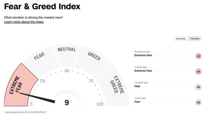 1.Stock Market hits an Extreme Fear reading of 9, the most amount of Fear since November 👻😱🫂