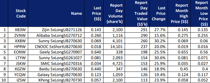 $Zijin 5xLongUB271126(XB3W.SI)$ $Alibaba 5xLongSG270712(ZVNW.SI)$ $Sunny 5xLongUB270630(XX8W.SI)$ $CNOOC 5xShortUB270630(HPRW.SI)$ $Geely 5xLongSG270907(EONW.SI)$ $Sunny 5xLongSG261027(LTYW.SI)$ $SMIC 5xLongSG270316(JSKW.SI)$ $Baidu 5xLongUB270630(XGZW.SI)$ $Galaxy 5xLongUB270630(YCQW.SI)$ $XPeng 5xLongUB270730(IZSW.SI)$