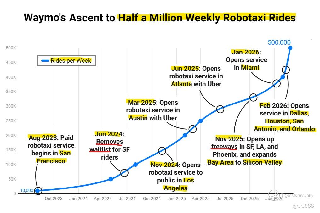 On 27 Mar 2026, TechCrunch shared that Waymo (GOOG’swholly-owned subsidiary) has achieved 500,000 paid robotaxi rides every week across 10 US cities - an accelerated commercial expansion. (see below)