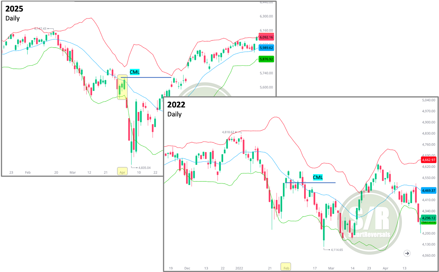 The current price structure can be compared not only with 2025 but with 2022 and many more bear markets, including 2018, 2008, and others. Two examples for the SPX: