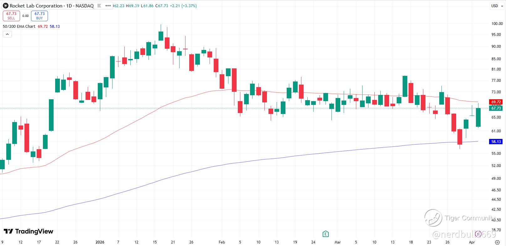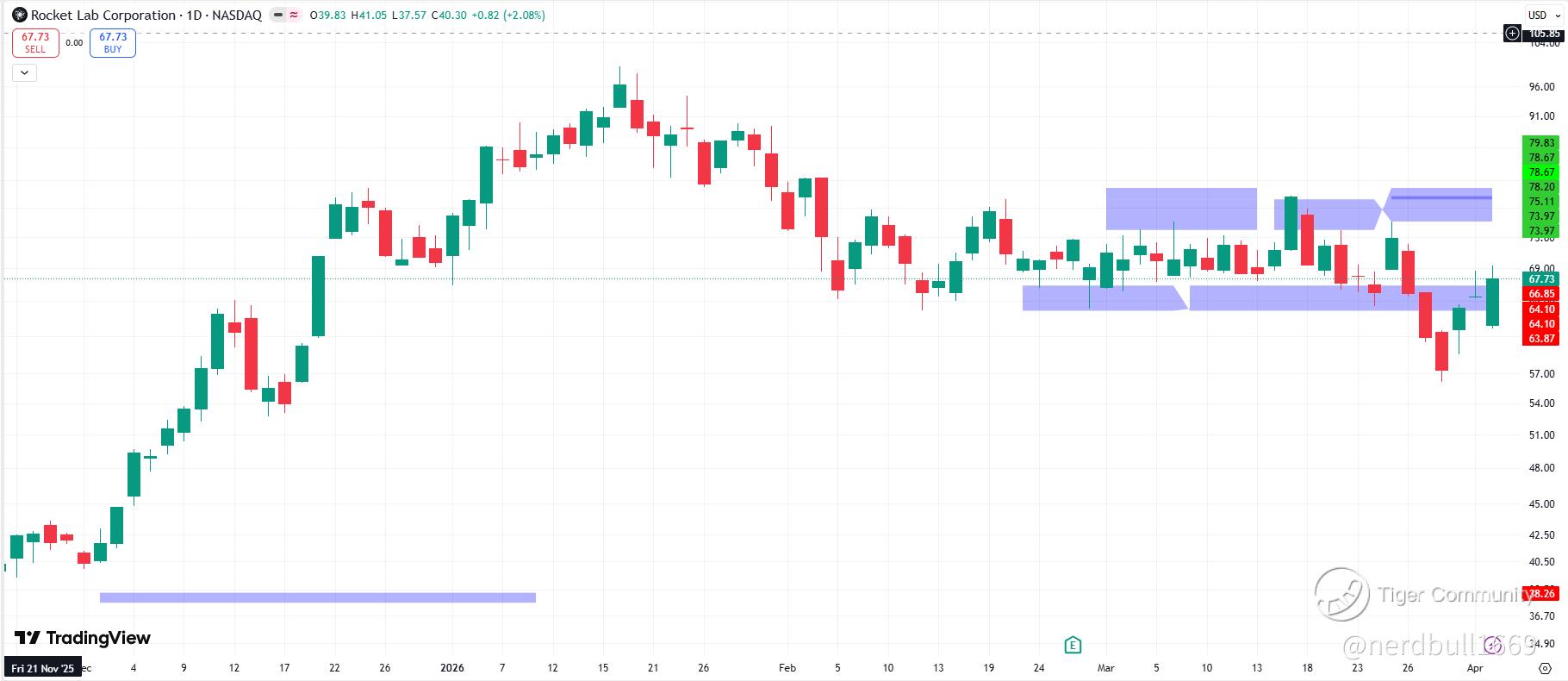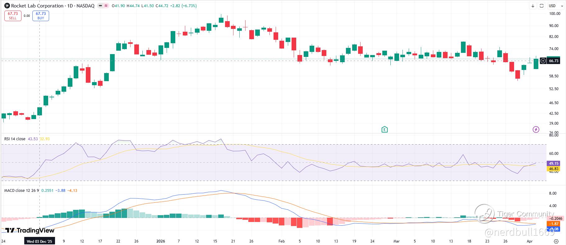 As of early April 2026, $Rocket Lab USA, Inc.(RKLB)$ is in a period of high volatility, trading near a critical "make-or-break" junction. The stock has recently retraced from its 52-week high of $99.58 and is currently hovering around $67.73.