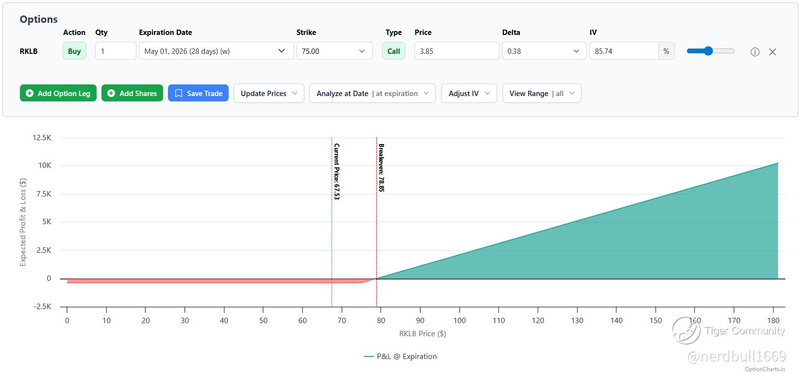 Consider Option For RKLB Potential Break Through $70 Support Zone