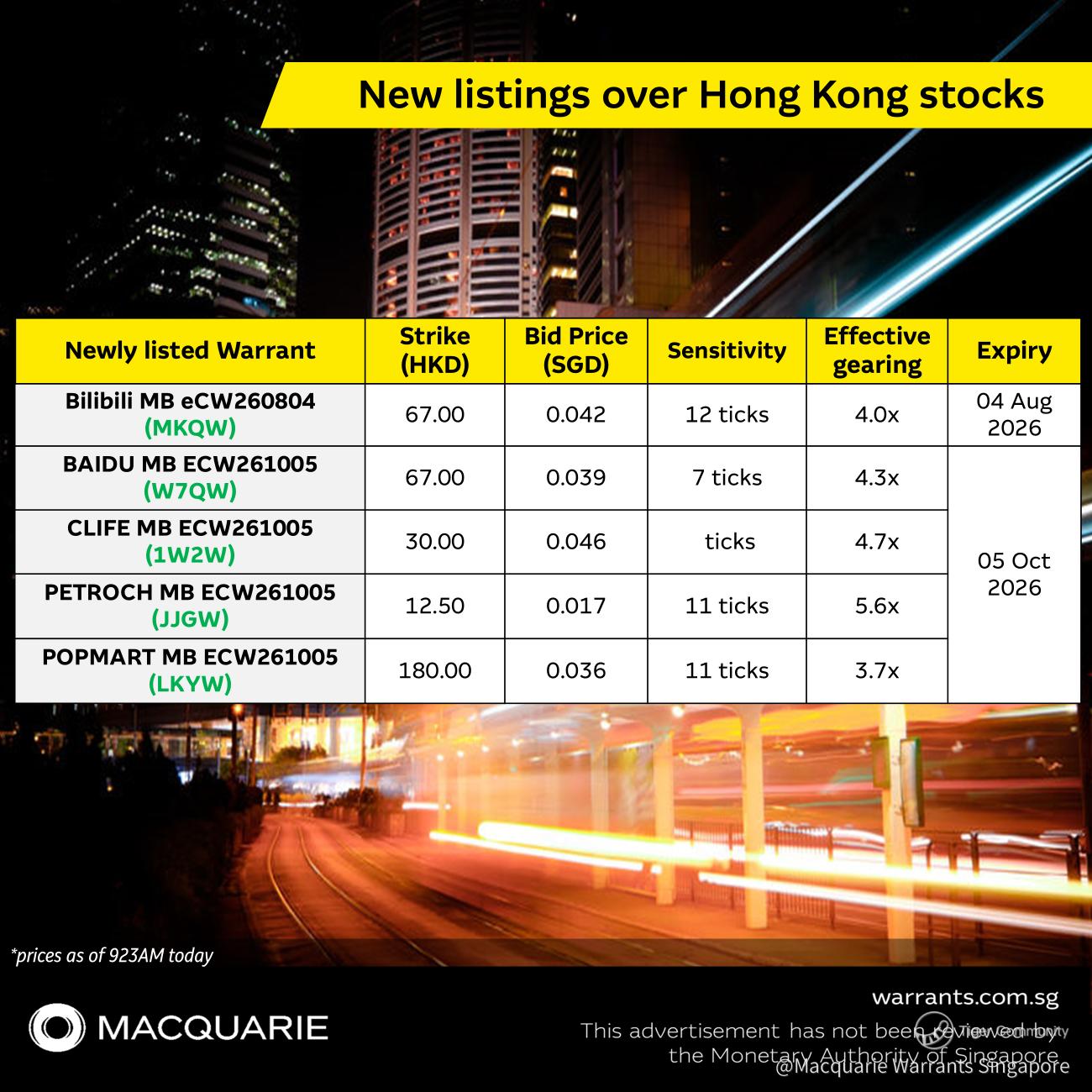 🆕Macquarie has listed a new call warrant $PetroCH MBeCW261005(JJGW.SI)$ (https://warrants.com.sg/tools/livematrix/JJGW) tracking PetroChina shares today