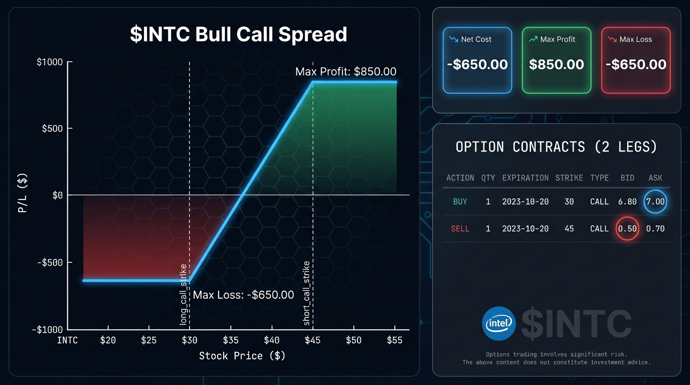 $INTC Bull Call Spread Strategy — Cost $32, Max Profit Up to $200,