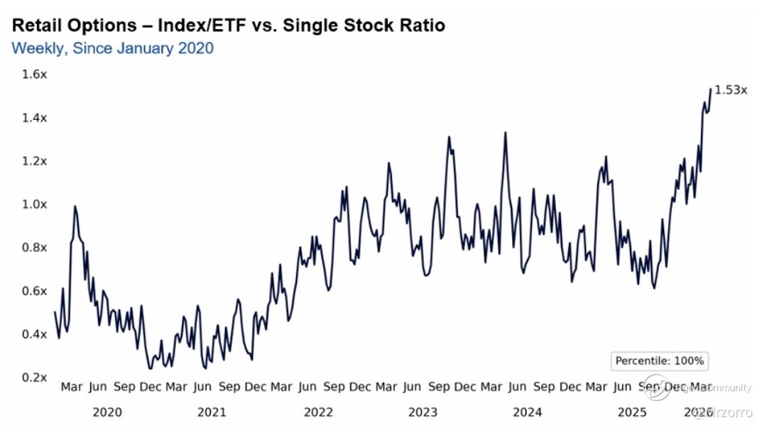 Systematic strategies — CTAs, vol-targeting funds — are running at roughly the 28th percentile of historical long exposure. Retail has already de-risked. Hedging demand is elevated.