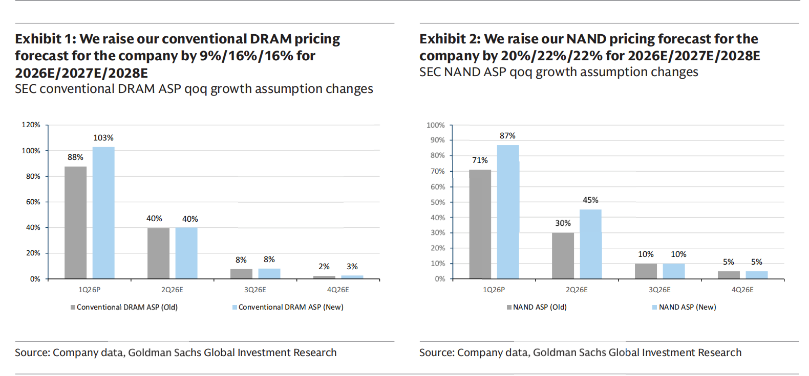 Goldman noted that even with inventories at extremely low levels, the average selling prices (ASP) of DRAM and NAND surged 103% and 87% QoQ, respectively. The more important insight is this: this is not just a cyclical fluctuation — Samsung is now locking in elevated profits through long-term agreements (LTAs), and this kind of pricing power is unprecedented.