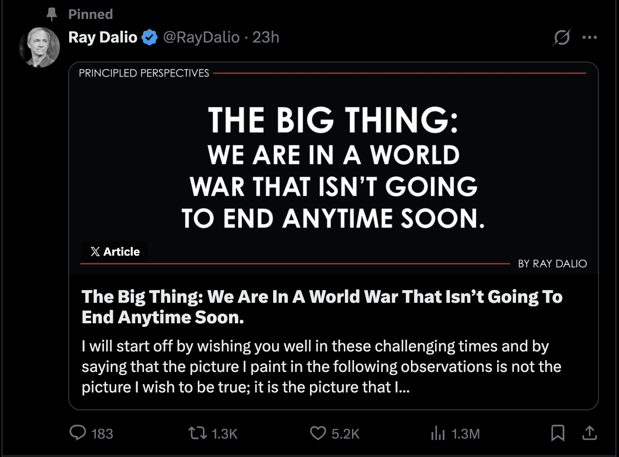 On one side, Wall Street giants such as Goldman Sachs and Morgan Stanley are collectively calling out: “A value opportunity in tech has emerged.” On the other, Bridgewater founder Ray Dalio dropped a bombshell in his latest post: “We are in a world war that will not end anytime soon.”