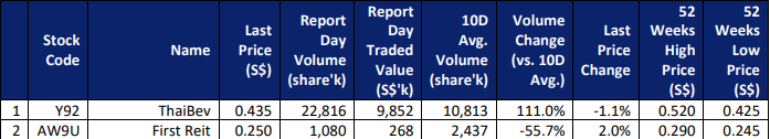 $ThaiBev(Y92.SI)$ $First Reit(AW9U.SI)$