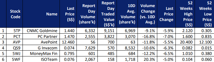 $CNMC Goldmine(5TP.SI)$ $PC Partner(PCT.SI)$ $AvePoint(AVP.SI)$ $G Invacom(QS9.SI)$ $MoneyMax Fin(5WJ.SI)$ $ISOTeam(5WF.SI)$