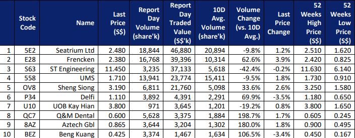 $Seatrium Ltd(5E2.SI)$ $Frencken(E28.SI)$ $ST Engineering(S63.SI)$ $UMS(558.SI)$ $Sheng Siong(OV8.SI)$ $Delfi(P34.SI)$ $UOB Kay Hian(U10.SI)$ $Q&M Dental(QC7.SI)$ $Aztech Gbl(8AZ.SI)$ $Beng Kuang(BEZ.SI)$