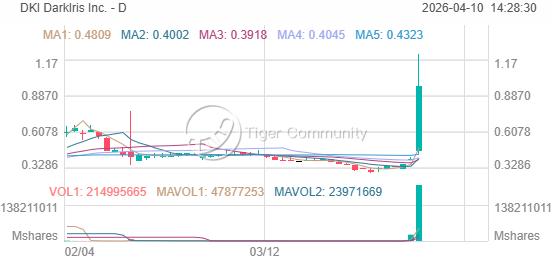 DKI closed at $0.9634 on Apr 9, soaring +142.67%. It remains 93.6% below its 52-week high of $15.00.