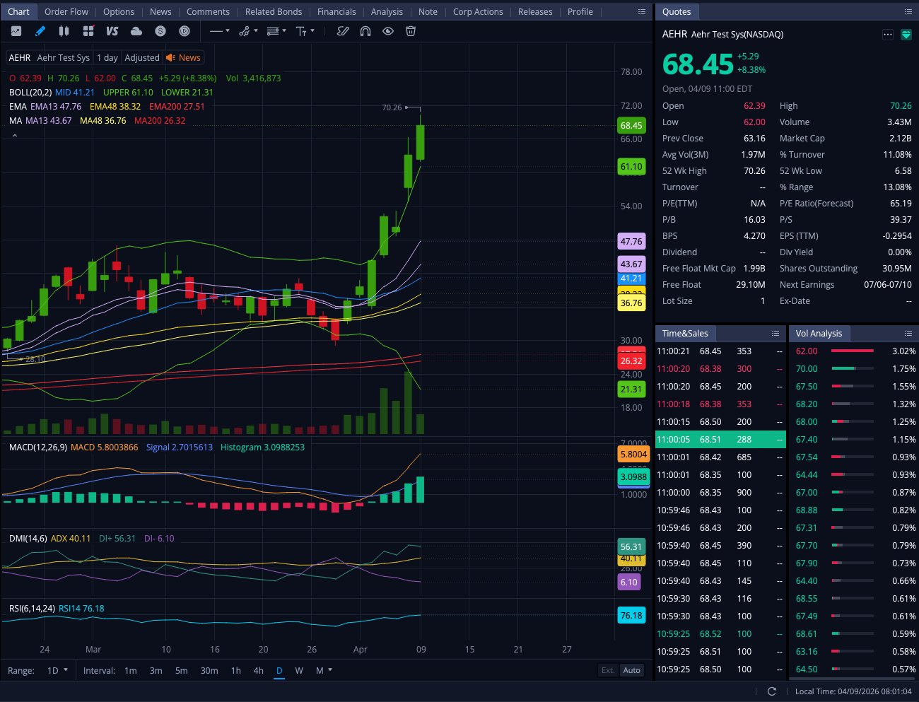 Not for the faint of heart, but shorting $Aehr Test(AEHR)$ with credit calls (or buying puts) looks enticing here. Might wait for the turn on longer timeframes before entering into a position.