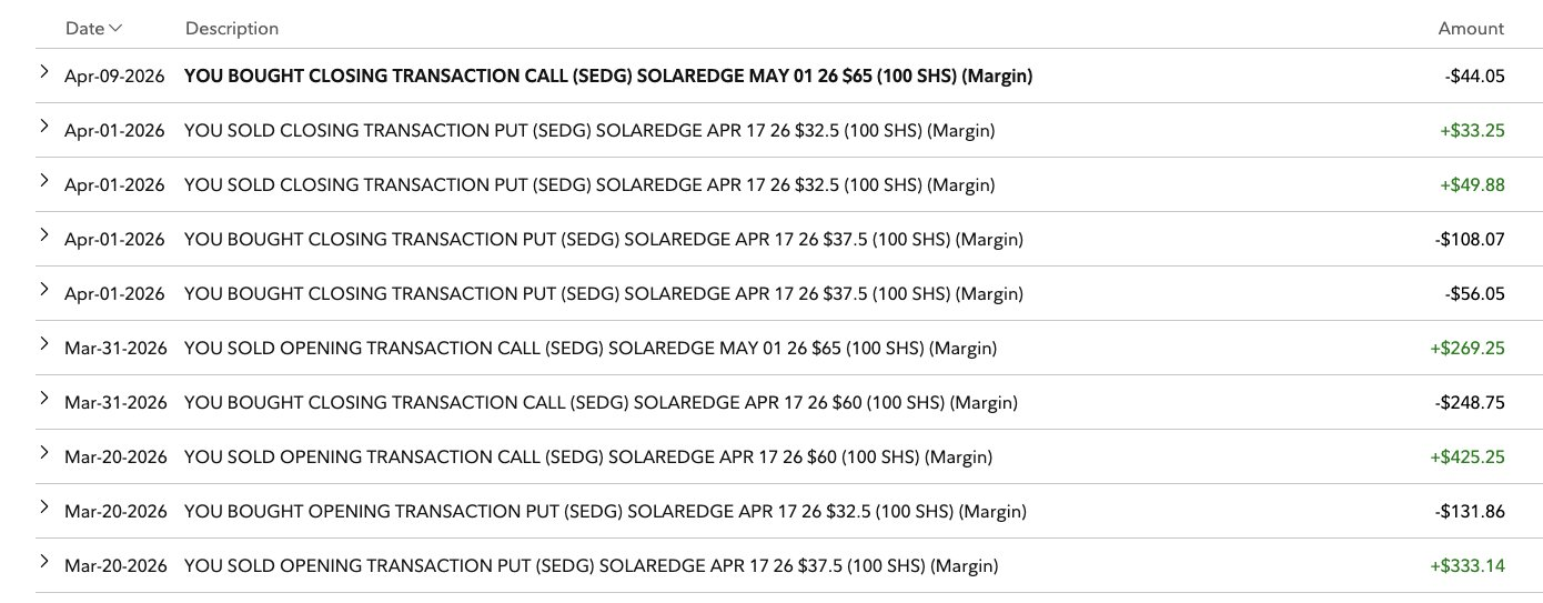 Closed out the naked call position on $SolarEdge(SEDG)$ for an overall profitable trade (including put credit spread).