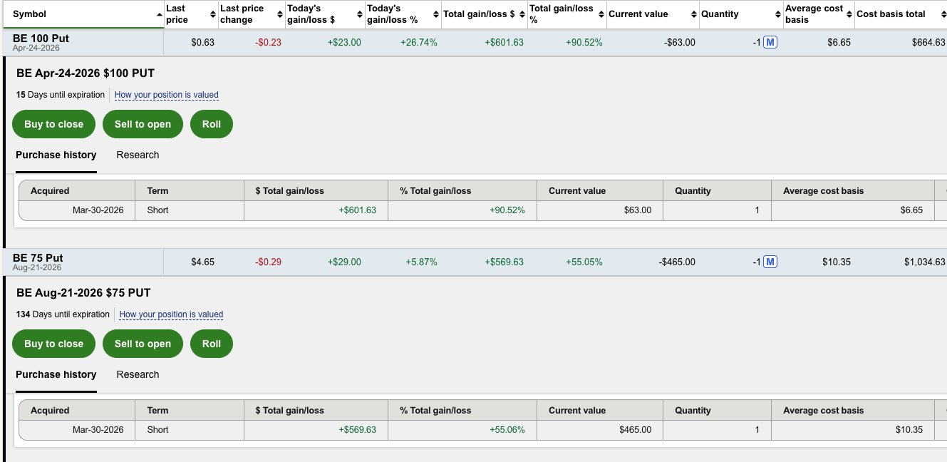 Closed out $Bloom Energy Corp(BE)$ puts for $1000+ in profit. 🤑
