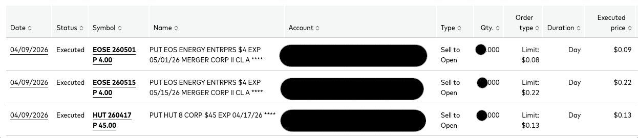 Here are some trades taken today. Wrote puts on the following: