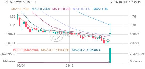 $Arrive AI Inc (ARAI) Soared +53.73%: AI Stock Explodes on Massive Volume, $1.42 High