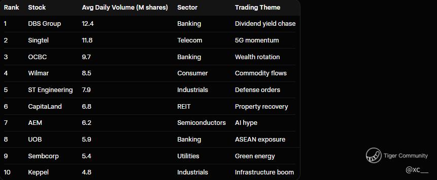 While the FTSE Global Index tumbled 3.0% amid heavy Q1 2026 turbulence from tariff shocks and geopolitical jitters, Singapore's Straits Times Index stood rock-solid like a fortress, climbing 5.1% with total return including dividends hitting a rock-solid 5.6%. π The Industrials and Consumer sectors stole the spotlight, powering blue-chip leaders like ST Engineering and Wilmar International, while mid-cap powerhouse AEM delivered a jaw-dropping 142.4% return in just three months on semiconductor demand surges. This resilience highlights SGX's defensive edge in uncertain times, with wealth management fees and regional trade flows cushioning the blows from global headwinds. But with the ceasefire rally shifting capital toward U.S. growth plays, is the SGX outperformance sustainable, or will rotation drain the momentum from top performers? Emerging markets add extra heat, with Asia's STI smashing 5,000 on bank surges like DBS's 29.9% YTD glow pulling inflows 10% as dollar dips to 94 unlock fresh capital waves. Let's break down the top 10 performers and traded stocks, crunch the sector stars, and spot if this is the cue to load up on SGX gems or watch for rotation risks in 2026. ππ‘οΈ