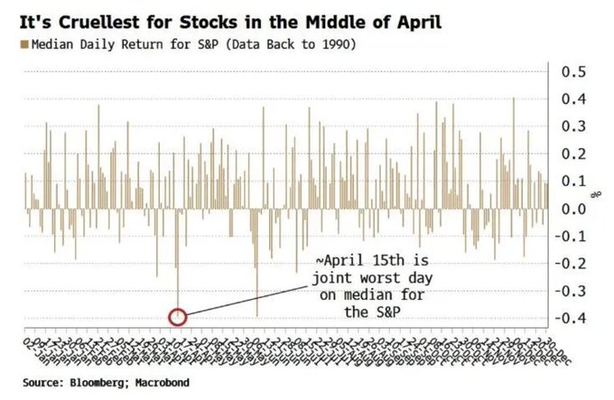 Over the last 35 years, April 15 has been the joint worst day of the year for the S&P 500 📉📉