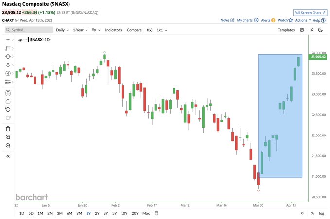 Nasdaq on track for its 11th consecutive green day, its longest winning streak since 2021 📈📈