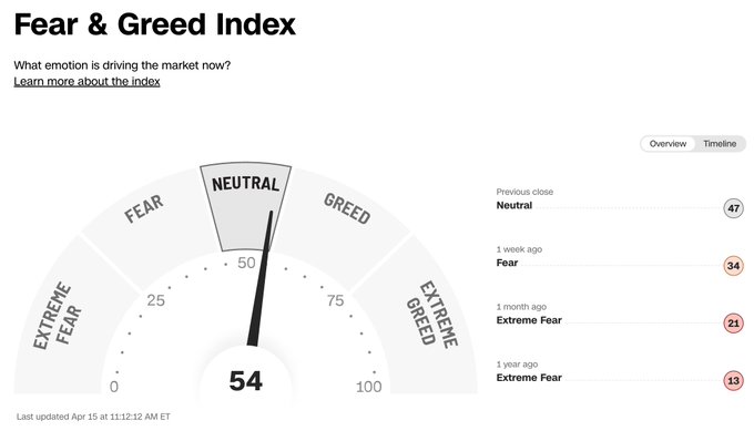 Stock Market on the brink of greed for the first time in more than 2 months 📈🤑🥳🫂