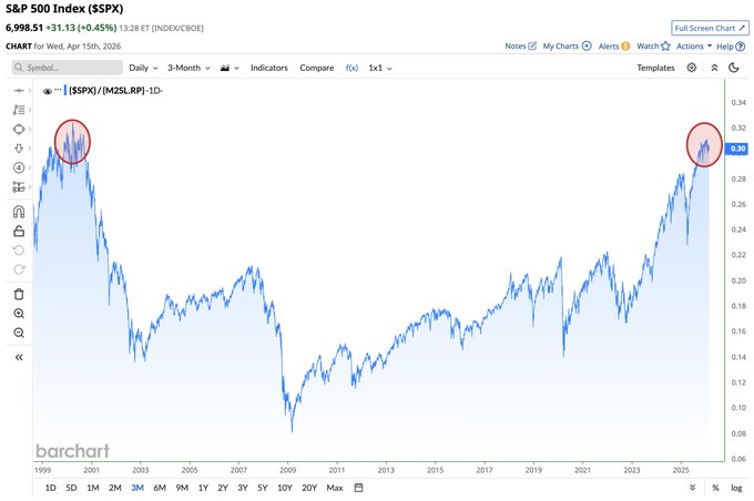 S&P 500 relative to M2 Money Supply 🚨 Dot Com Bubble vs. Now 😱👀