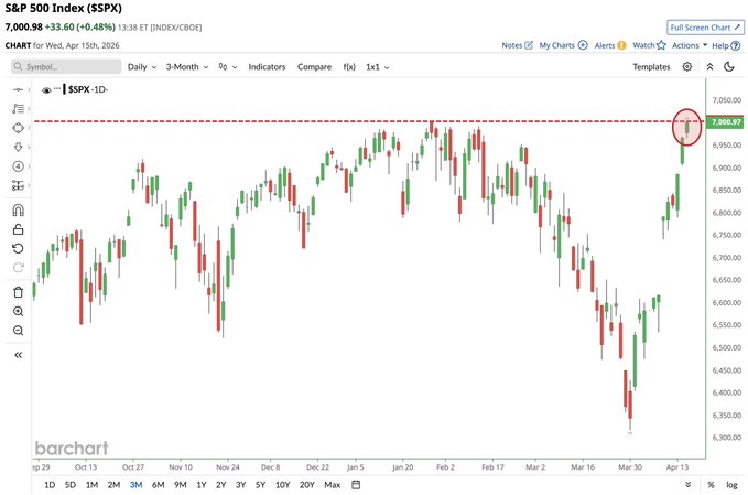 S&P 500 $SPX hits 7,000 for only the 2nd time in history 📈🥳🤑🫂