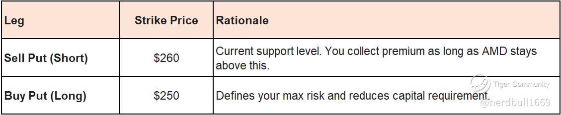 The Play: Sell a put at a strike where you see support (e.g., $260) and buy a lower put (e.g., $250) for protection.