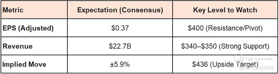 The options market is currently pricing in a 5.9% move in either direction following the announcement. Given the current price of ~$400, this implies a swing of roughly $24. If the stock fails to hold the 200-day Moving Average (currently near $400), expect the "trend down" you noticed on April 20 to accelerate as short-term traders exit.