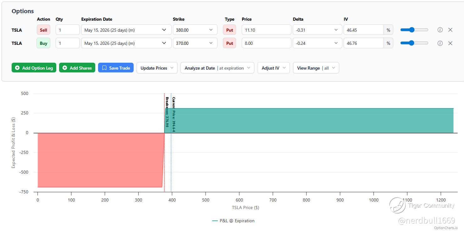 The Bottom Line: If you believe the "AI Pivot" narrative will outweigh the "Soft EV Delivery" reality, a Bull Put Spread below the $350 support level offers a higher probability of success than playing the $400 breakout directly.