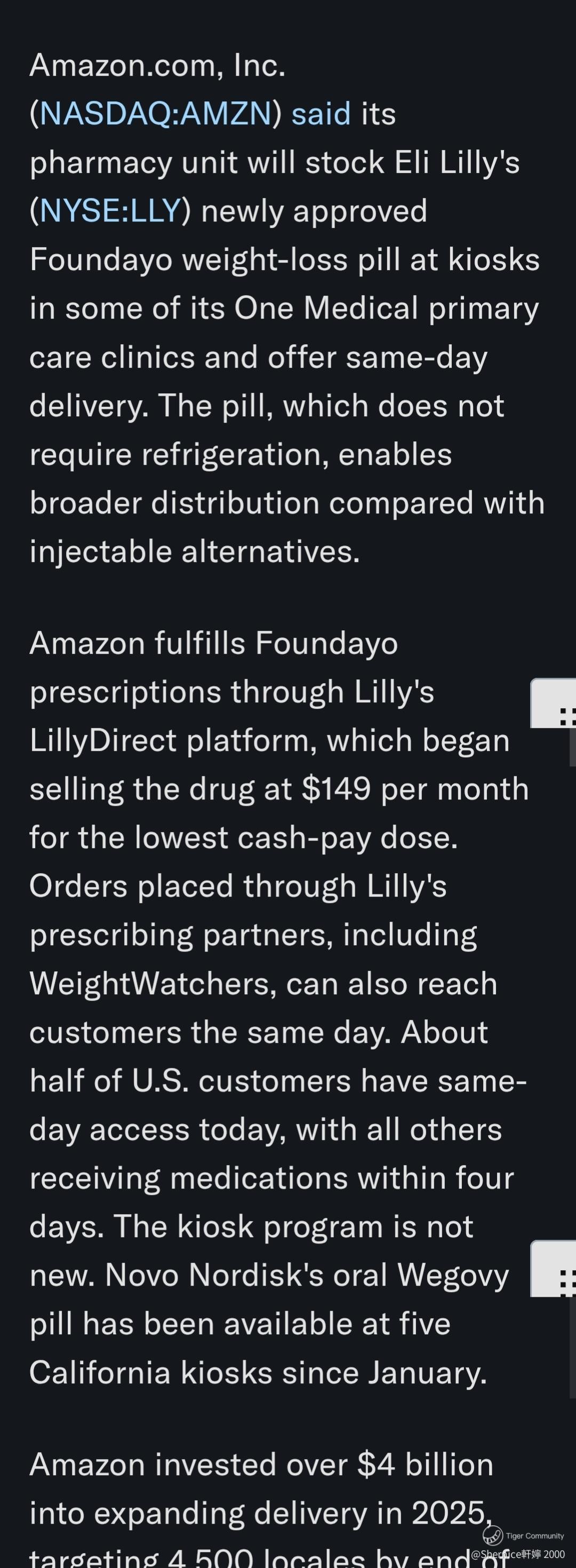 It’s clear that someone is trying to push the share price lower by circulating "stale" news. The headlines about Amazon’s push into GLP-1 and Eli Lilly’s Foundayo aren’t fundamentally new, but they are being timed to hit the tape while the stock is vulnerable.