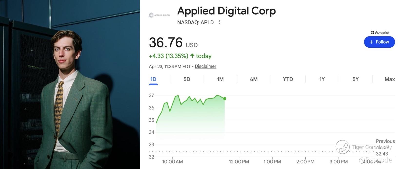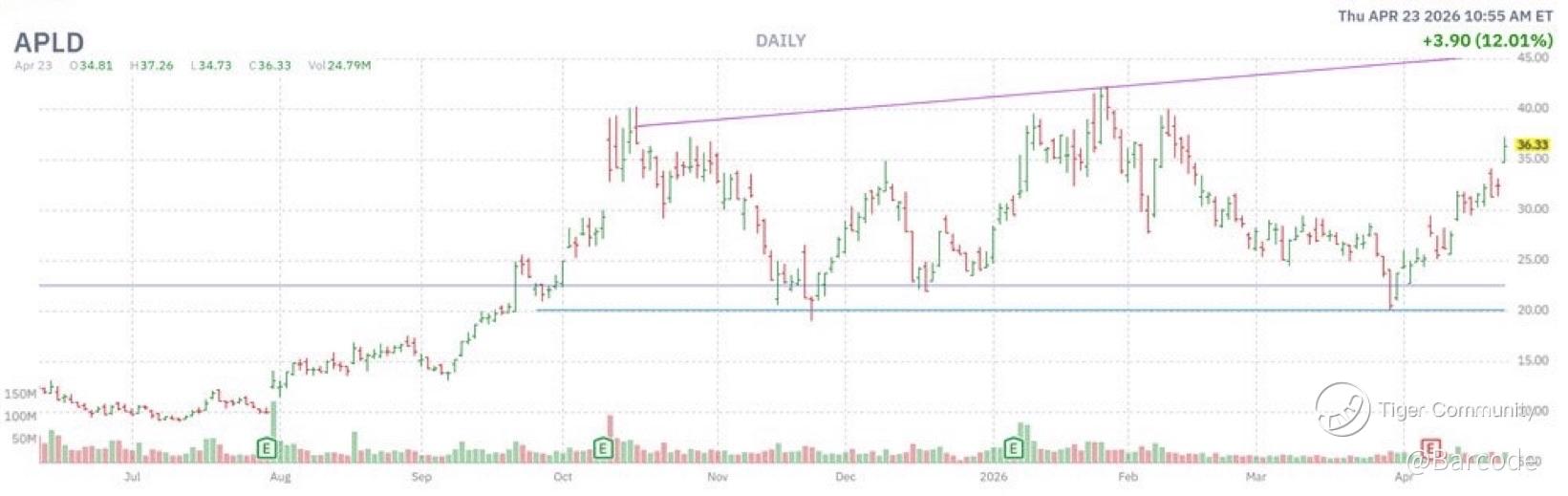 $APLD surged +13.2% today, pushing to its highest level since mid-Feb and extending +50.5% YTD. This is not momentum chasing. It is a direct repricing tied to a newly secured 15-year, ~$7.5B lease with a U.S.-based, investment-grade hyperscaler.