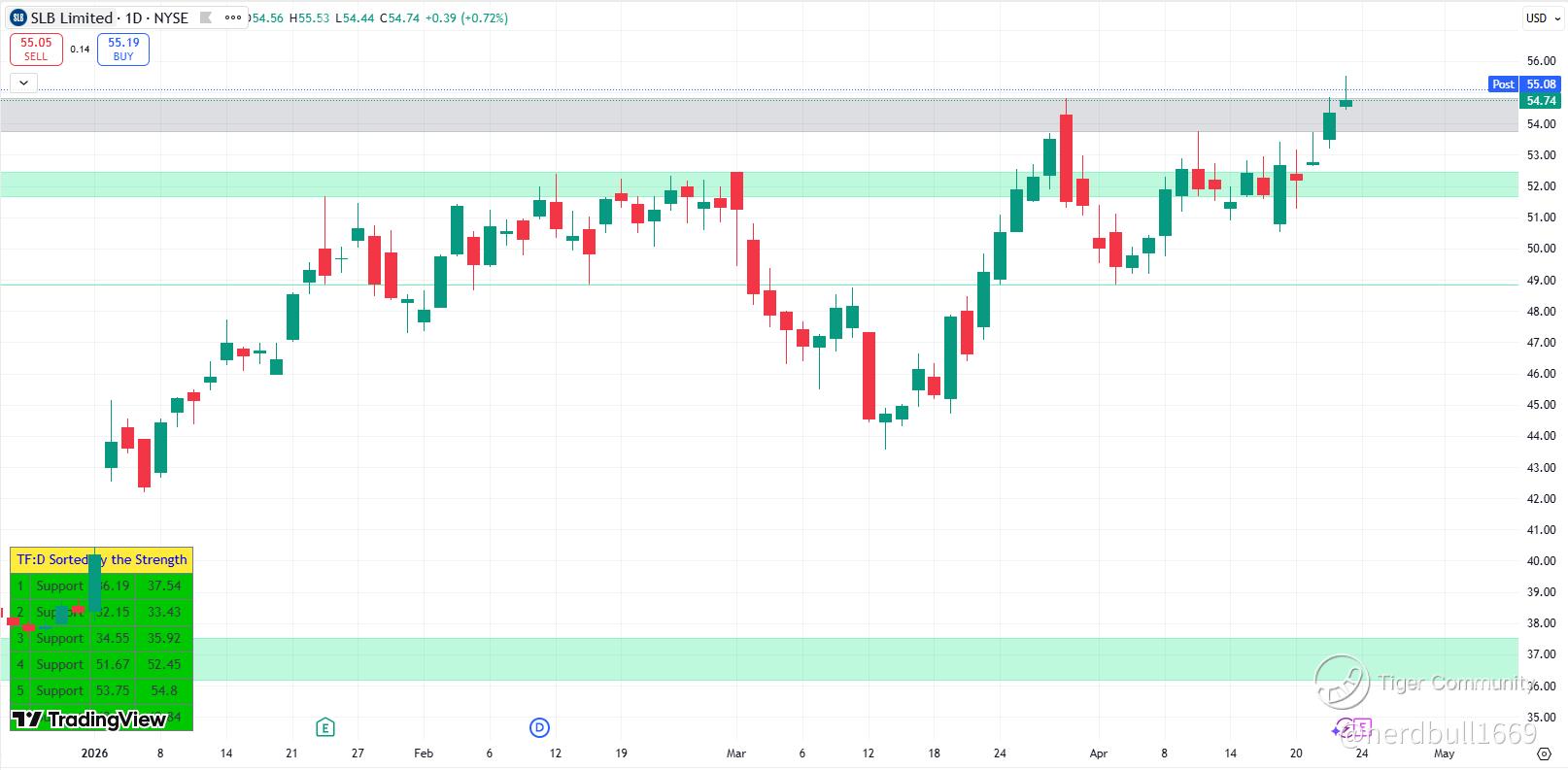 SLB has established strong technical support at the $50.00 psychological level, with resistance looming near $54.80.