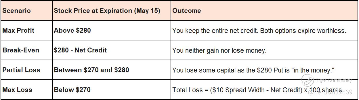 Net Credit: You collect a premium. If AMD stays above $280, you keep the full credit.
